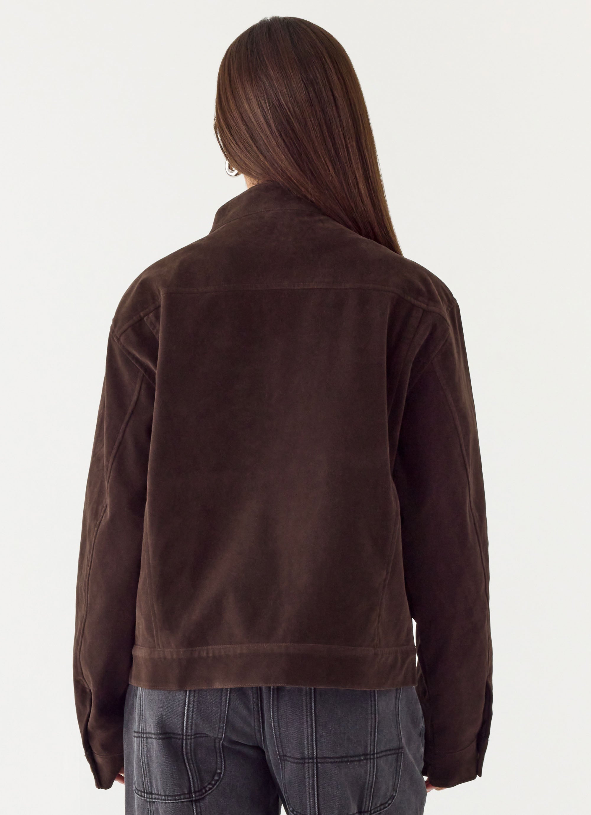 Peppermayo Exclusive - Jeremy Faux Suede Biker Jacket - Dark Chocolate